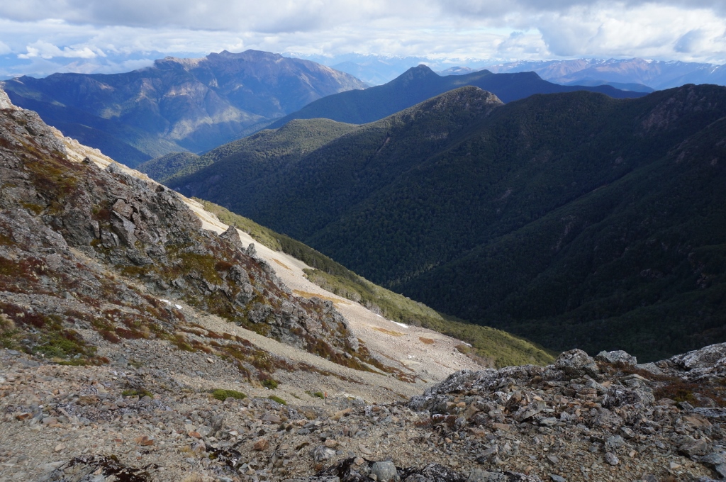 Otrā diena. Esmu tikko pieveikusi vēl vienu ekstrēmu kāpienu beznosaukuma virsotnē uz Z no Rintoul kalna. Akmeņi šeit nestabili. Nogāze stāva. Nepatīk man šādas vietas, kad uz pleciem smaga mugursoma. Toties augšā ainava skaista…