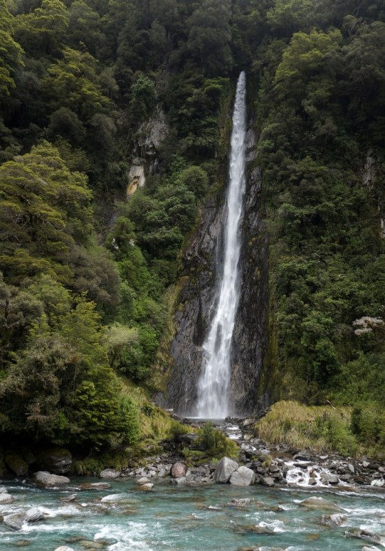 Gandrīz 100 metrus augstais Thunder Creek Waterfall