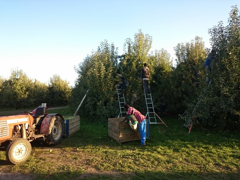 Visbriesmīgākie āboli bija Granny Smith. Tie paliks rūgtās atmiņās gan man, gan puišiem. Šajā milzīgajā blokā strādājām piecas dienas. Un pēdējā dienā mums viss bija tik ļoti apnicis, ka nolēmām palikt stundu ilgāk, lai bloku beidzot pabeigtu. Līdz ar rietošo sauli, puiši kopīgi lasa pēdējos kokus…
