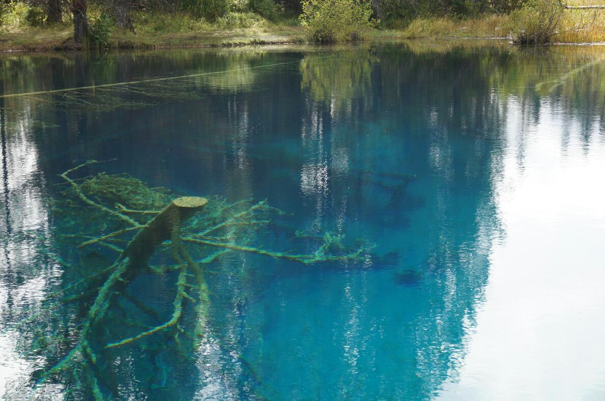 Little Crater Lake. 15 metrus dziļš, bet tik dzidrs, ka redz cauri…