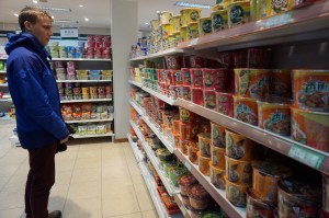- Ķīniešu nūdeļu stends Pekinas veikalā. Un kad pēc pusstundas ilgas, grūtas izvēles devāmies pie kases, izrādās viņi nepieņēma mūsu kredītkarti…