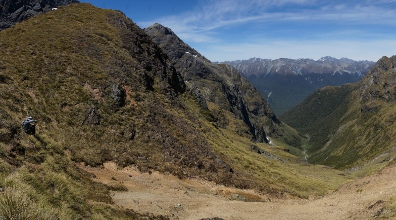 Skats no Dore Pass uz DA. Kaut kur no tiem mežiem izrāpāmies…