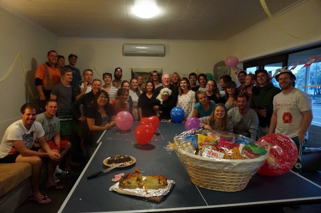 Hosteļa saimniekam Kītam dzimene. Arī Badijs (baltais spalvu kamols Kītam rokās) ticis bildē – viņš šeit lielākais Boss. 🙂