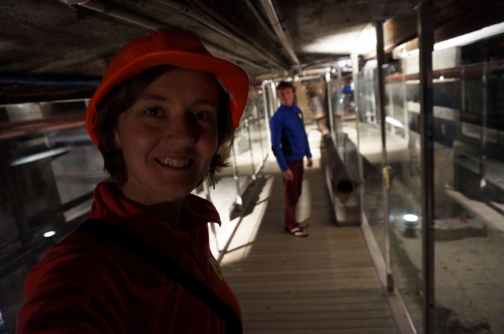 Apskatot pagraba ekspozīciju, kur redzamas kādreizējās dubļu vannu procedūru telpas, jāvalkā ķivere.