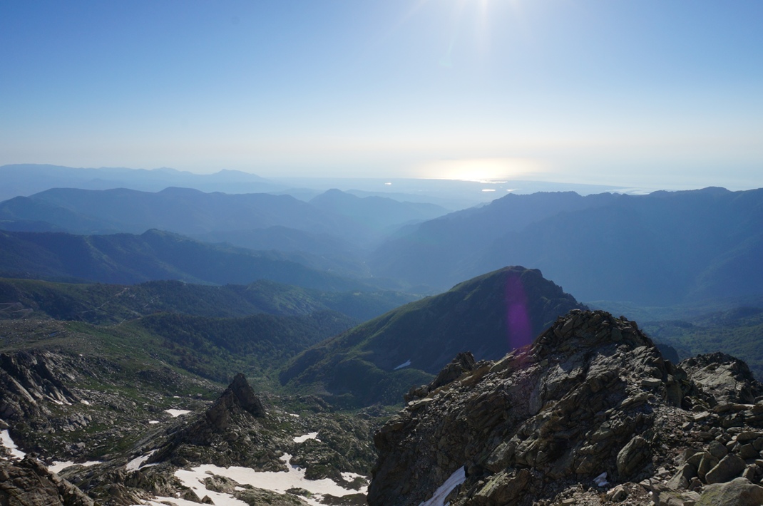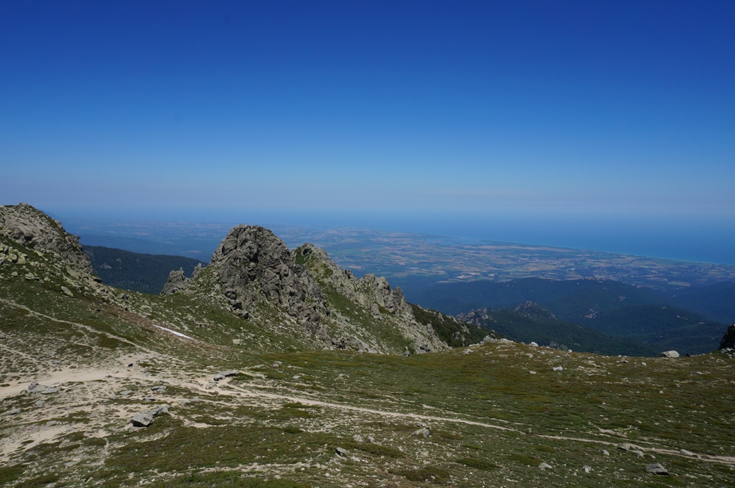 Dienas pēdējā daļa no ciemata Col de Verde līdz refuge de Prati veda stāvā kalnā – 2h kāpiens. Bet kas par skatu augšā pavērās!!! Uz Vidusjūru un Korsikas piekrastes pilsētām… Dvēsele lidoja!!! 🙂 Pats refuge arī jauks – zaļa pļava ar iepriekš minēto ainavu…