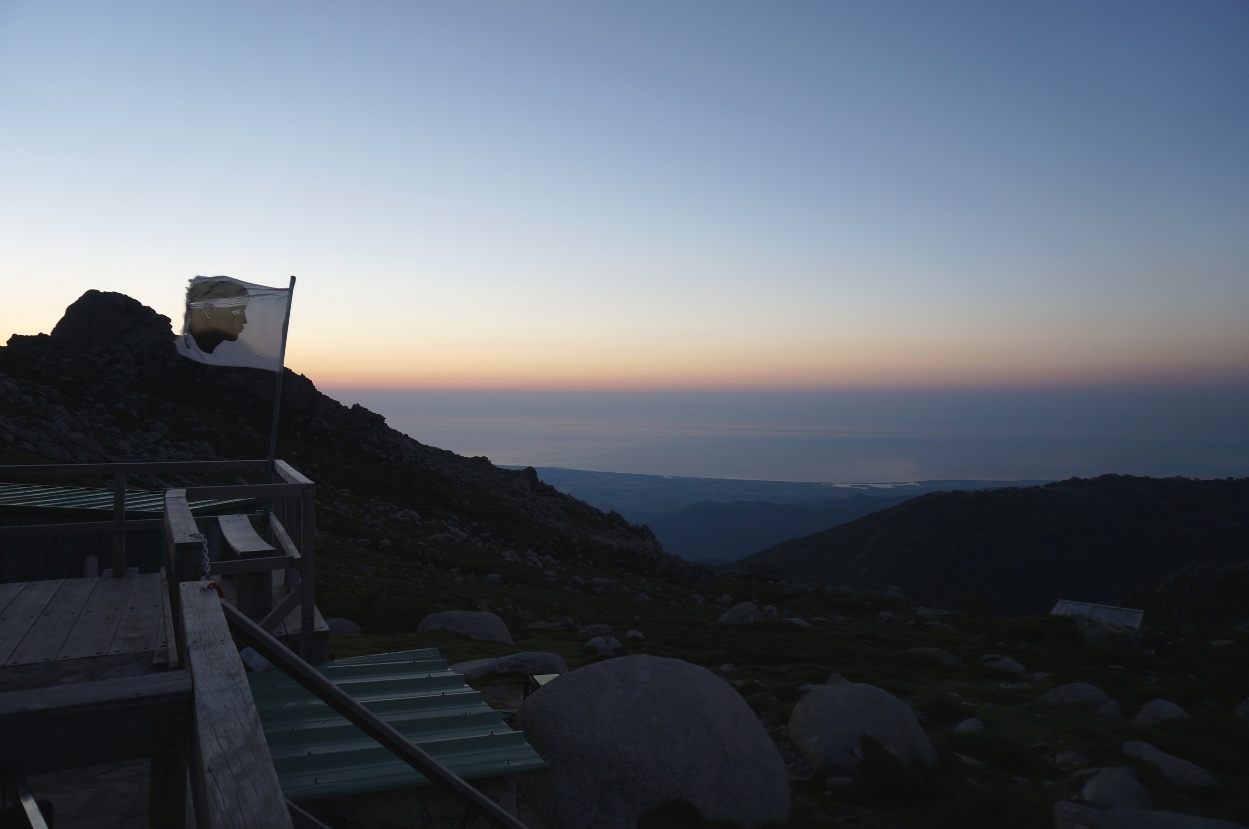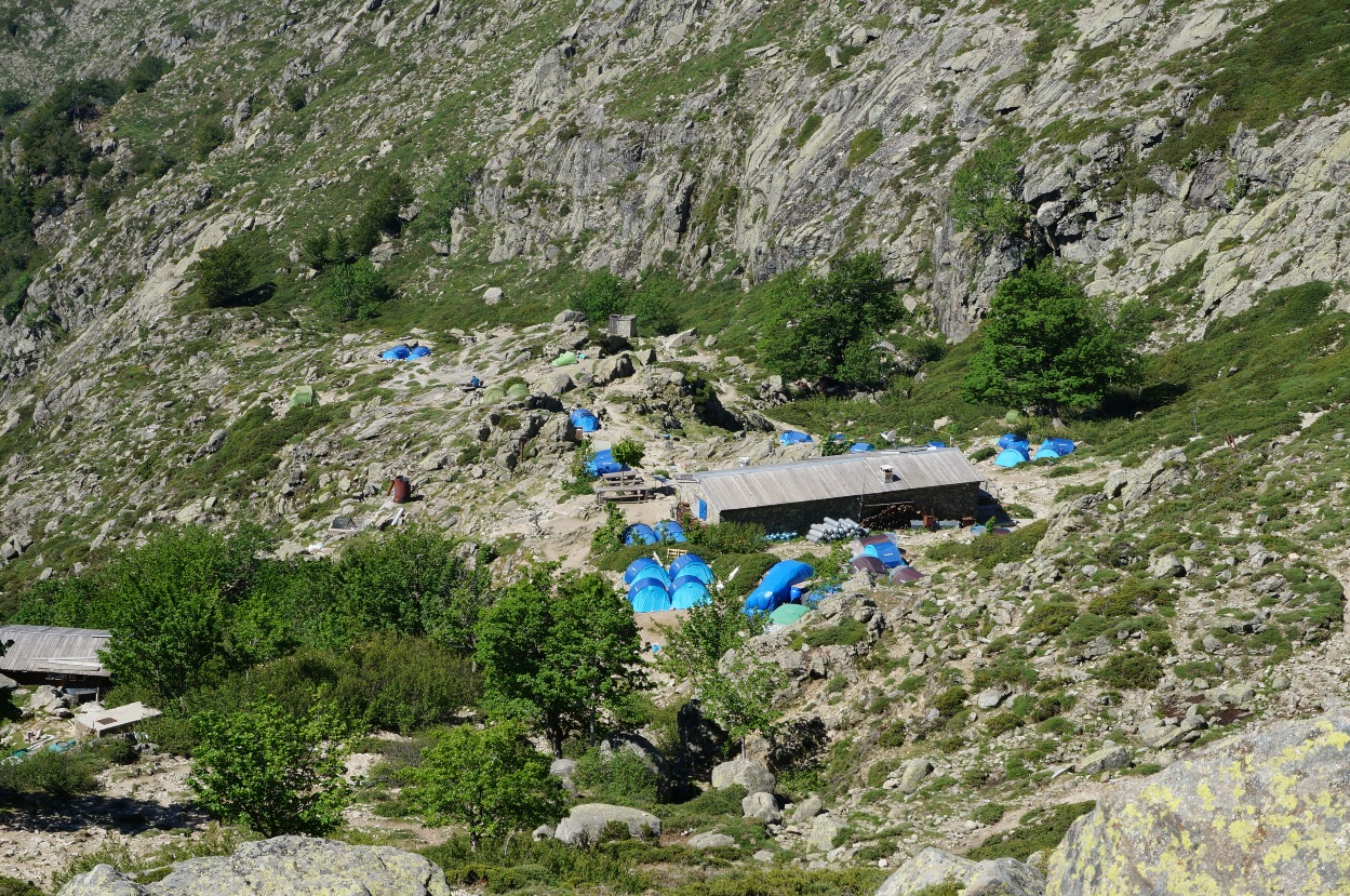 Rīta pusē man pa priekšu kādu brīdi gāja tā pati sieviete, kas vakar mūs apdzina. Panākt viņu nevarēju, jo viņa gāja ātri un viegli. Kā eņģelis… 🙂 Beidzot ar viņu aprunājos šeit refuge. Francūziete Marika. Spēlē vijoli simfoniskajā orķestrī Parīzē, bet bērnībā dzīvojusi blakus Alpiem, tapēc kalni viņai esot asinīs. GR20 esot sākusi Vizzavonā. Vakar ceļā uz Monte Rinoso esot atradusi īsto taku un bijusi augšā daudz ātrāk kā mēs. Un no augšas ar bažām vērojusi, kā mēs lienam tur, kur nav jālien… Gaidījusi tik ilgi, kamēr mēs tikām droši uz otrā plato.