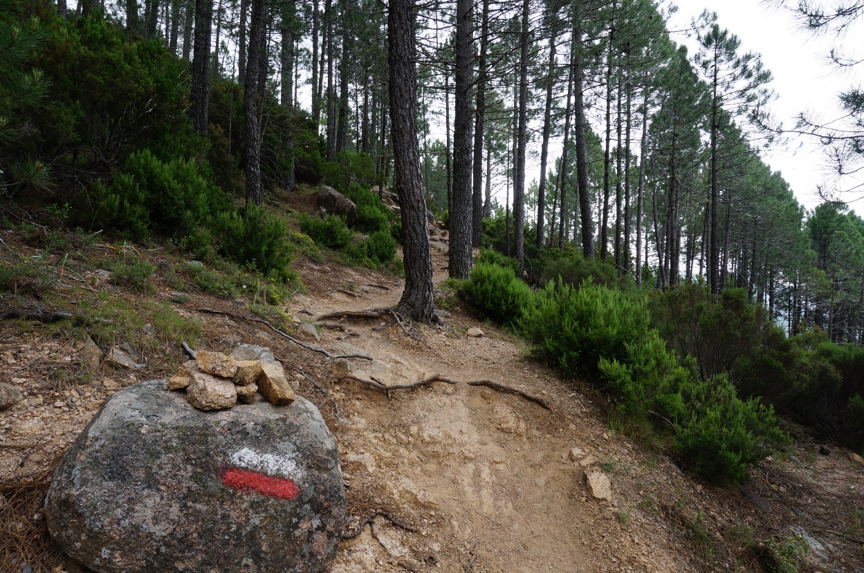 Šodien pēc Col de Bavella ciemata atlikušais ceļš veda cauri skaistam mežam pa akmeņainu taku. Pēkšņi sapratu, ka nav taču kur vairs steigties. Šodien arī saule nekarsēja – bija apmācies. Stundu nosēdēju kaut kur augšā klintīs pa ceļam. Fantastiska ainava…. Interesanti, ka sākumā droši piegāju pie klints malas, apsēdos, vēl zābakus novilku. Bet pēc pusstundas sāka reibt galva. Laikam smadzenes sāka aptvert, kur atrodos. Un pēc stundas pusčetrāpus līdu no turienes prom… Pēkšņi bailes bija atgriezušās. 😀