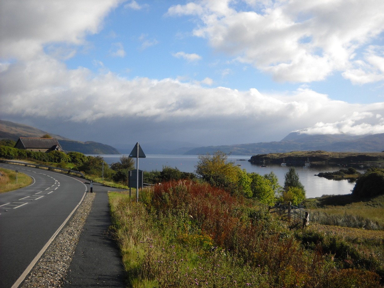 Nemazgājusi muti, nedzērusi (jo pēdējās ūdenspiles izdzēru iepriekšējā vakarā, un šeit nav nekādu veikalu) un neēdusi, sapakoju savu somu un devos gar šoseju tālāk. Pēc stundas gājiena sasniedzu kādu māju puduri blakus Isle Ornsay un, kārtīgi izpētījusi visu savu pieejamo info no bukletiem un pirms tam fotoaparātā sabildētiem autobusu attiešanas sarakstiem, nolēmu palikt šeit un sagaidīt autobusu pēc 40 minūtēm.