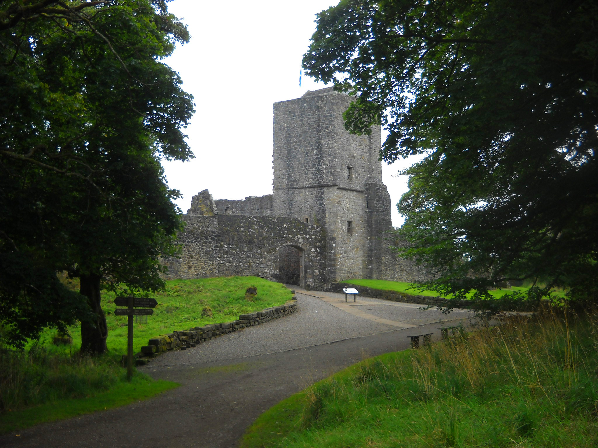 Pēc dažiem kilometriem sāku uz zīmēm manīt virzienu uz Mugdock castle. Līdz kādā krustā West Highland Way veda taisni, bet Mugdock castle bija 2 jūdzes pa labi. Nolēmu tomēr aiziet, jo pirms tam kādā info stendā biju redzējusi fotogrāfiju ar iespaidīgām pilsdrupām. Nācās kāpt stāvā kalnā, bet galu galā nenožēloju šo papildus maršrutu, jo pilsdrupas tiešām bija iespaidīgas un interesants apskates objekts ar daudz info stendiem, kuros sīki viss aprakstīts par 14. gadsimtā celtās pils vēsturi un arhitektūru.