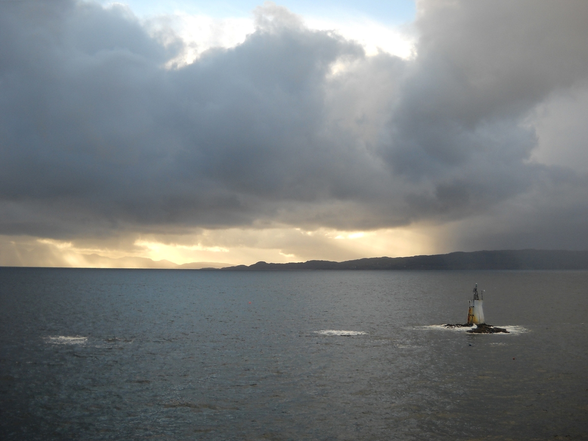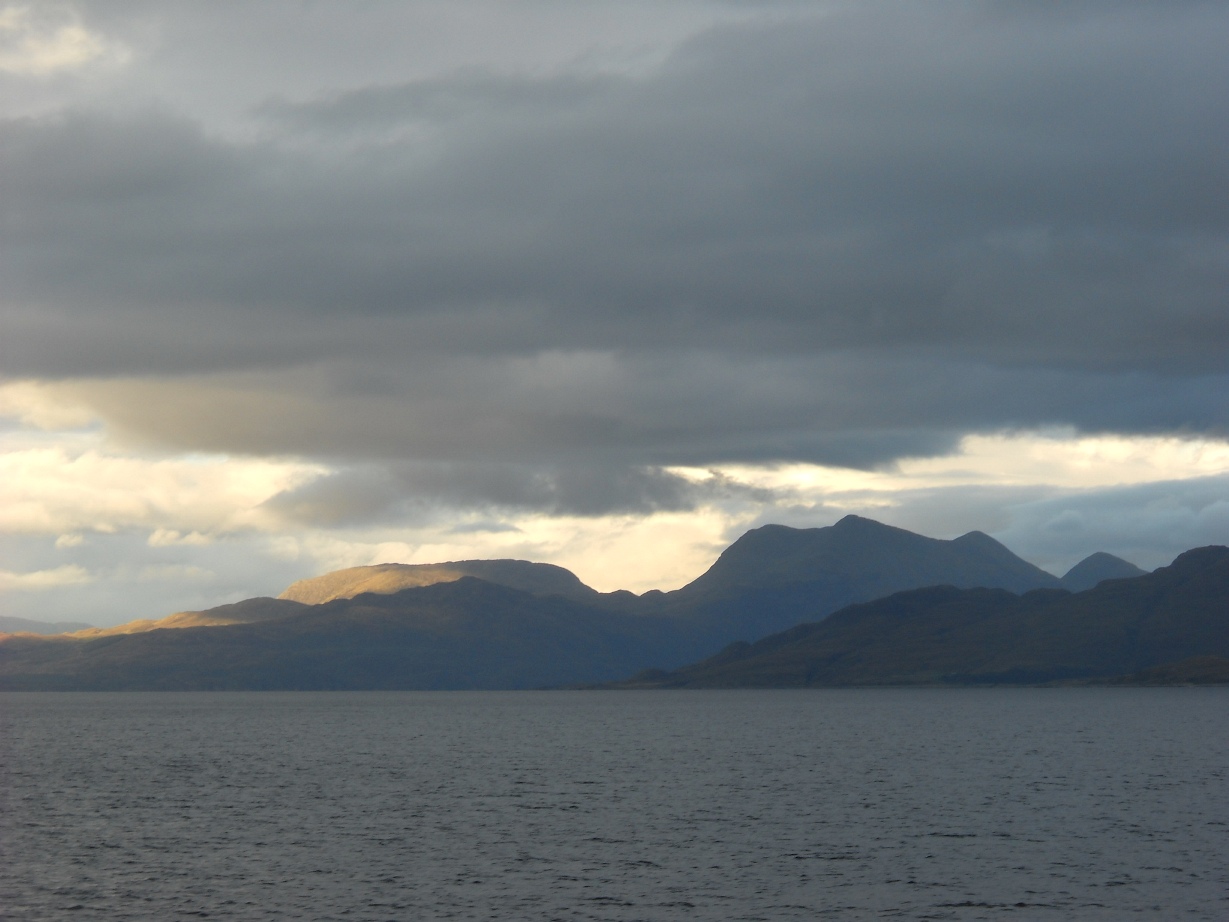 Prāmis trakoti šūpoja. It kā vējš nebija pārāk nopietns, bet 25 minūšu laikā man pat paspēja samesties nedaudz nelabi. Ainavas gan kolosālas pavērās visos virzienos. Vietām gāza lietus, vietām vakara saules apspīdēti kalni…